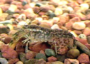 Cambarellus shufeldtii, dwarf crayfish, female with developing young under her tail.