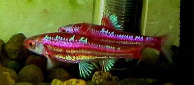 Notropis chrosomus, rainbow shiner, breeding pair