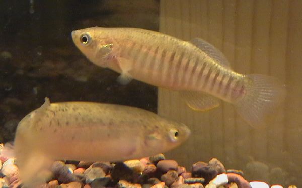 Fundulus pulvereus, bayou killifish, Port Forchoun Louisiana, adult male (above) and female, 2003
