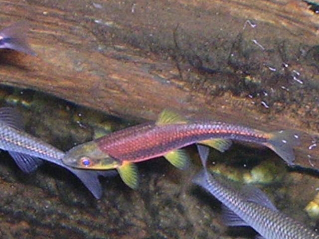 Notropis chlorocephalus, Greenhead Shiner, full breeding color, wild, USA William Roston, view photo