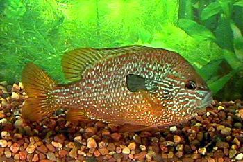 Lepomis megalotis, longear sunfish, adult male, Kansas, 2000