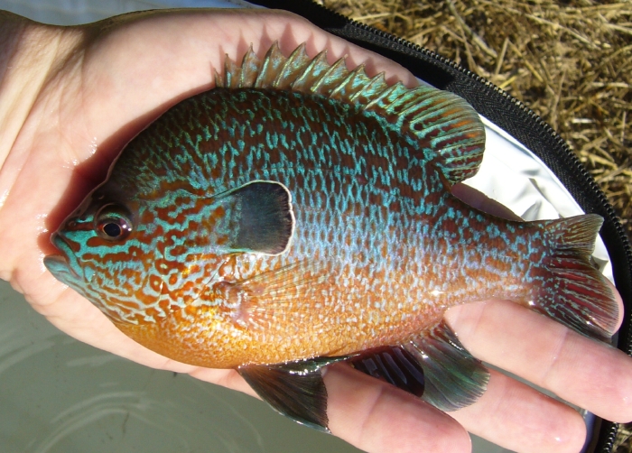 Lepomis megalotis, longear sunfish, wild, Peter Creek, Barren River drainage, Kentucky USA, June 2008