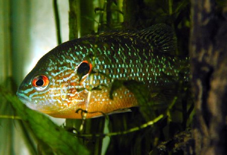 Lepomis megalotis peltastes, northern longear sunfish, Sugar Creek, Lima, Ohio USA,