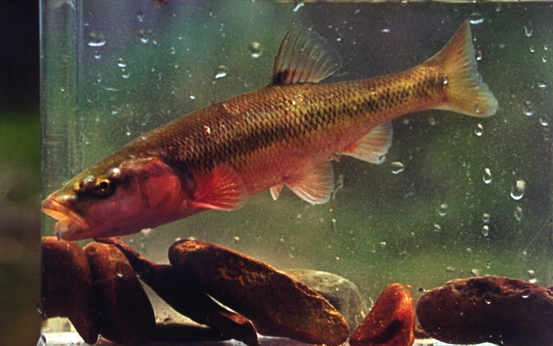 Semotilus atromaculatus, creek chub 1, adult male in breeding color,
