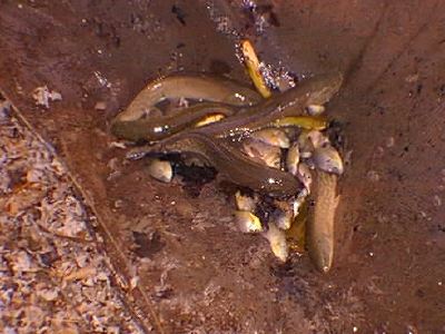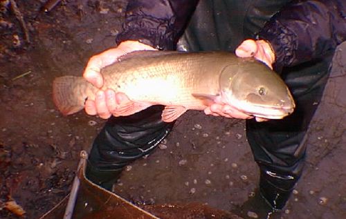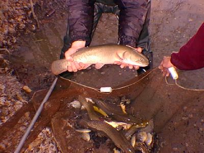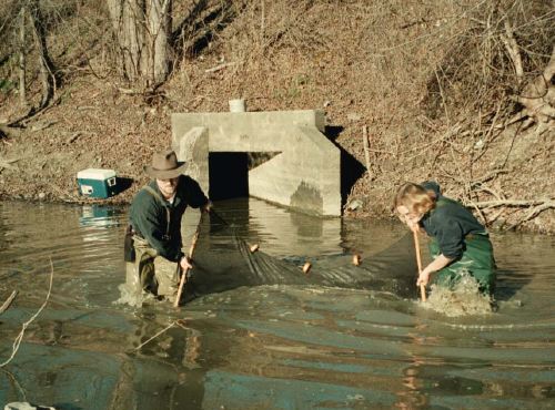 Don't know if Tom Payne or Larry James are on this list, but I'm sure they still remember our trip to the Walhonding River (north of Coshocton Ohio) with Pat Johnson. Was Klaus there that time? Anyway, Pat has no qualms about doing anything to get the fish. We were after bowfin, which we had found before in this overflow . Extensive seining produced no bowfin, as I recall, so we decided they must be hiding in the underground culvert that fed the . This was a square, concrete pipe running some 100 ft under the highway to the river. It was maybe no more than 4 ft high and narrowed down at one end. So we set one seine at the mouth of the culvert and Pat went around to the other end with another seine. Using his time tested one man seining technique he worked that culvert from one end to the other emerging in the fetal position and blanketed with cob webs only to find no bowfin at all. But we all gained respect for his devotion to the cause.